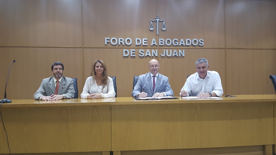 En la mañana del día Martes 22 de Marzo de 2016, se firmó el convenio de cooperación entre el Foro de Abogados de San Juan, representado por su Presidente, Dr. Hugo Alfredo Mergó, por una parte; y por la otra la Municipalidad del Departamento de Sarmiento, representado por su Intendente Gustavo Martín, en el marco del plan para facilitar el acceso a la justicia en dicha localidad.