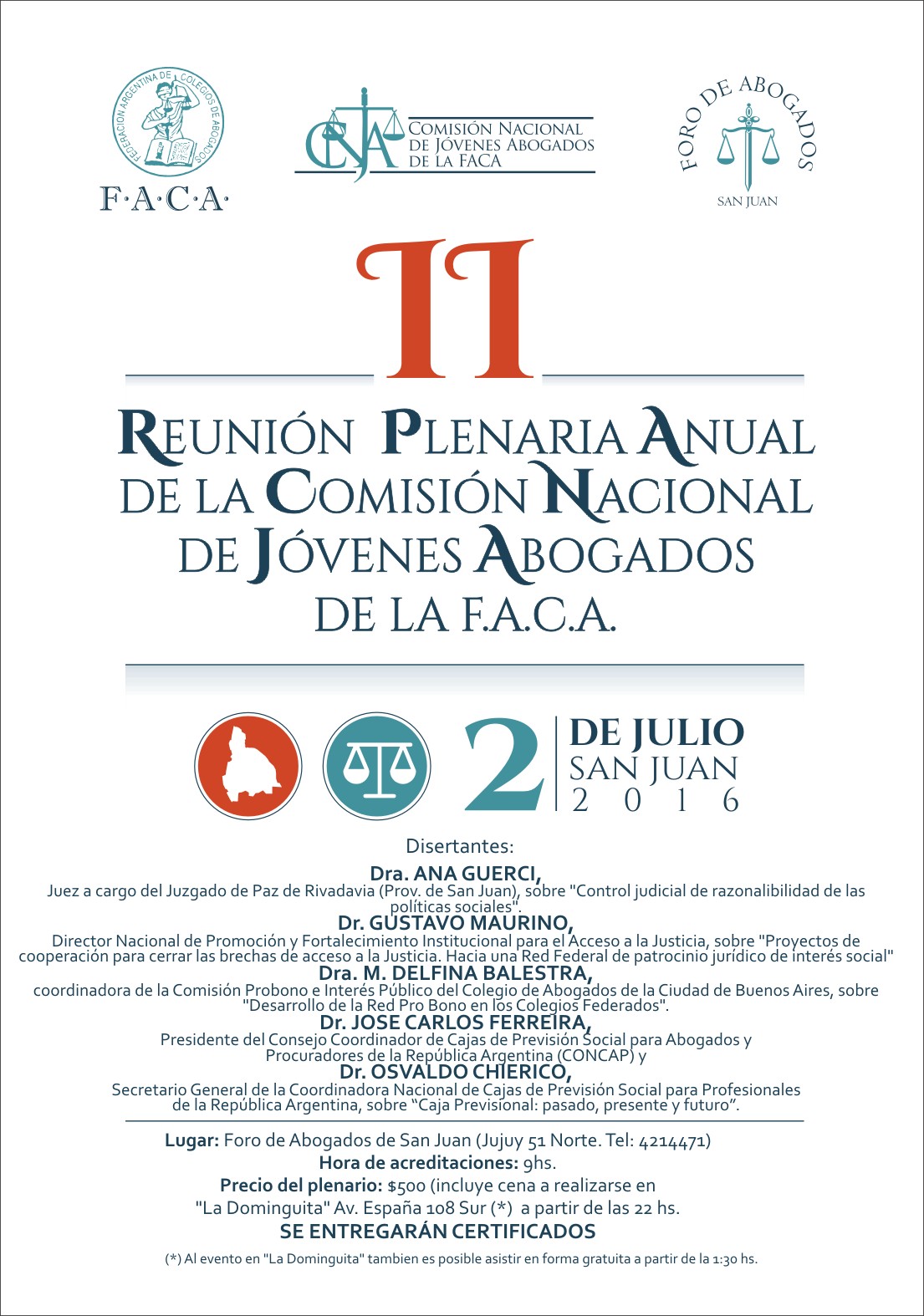 2 DE JULIO DE 2016: II Reunión Plenaria Anual de la Comisión Nacional de Jóvenes abogados de la F.A.C.A.
