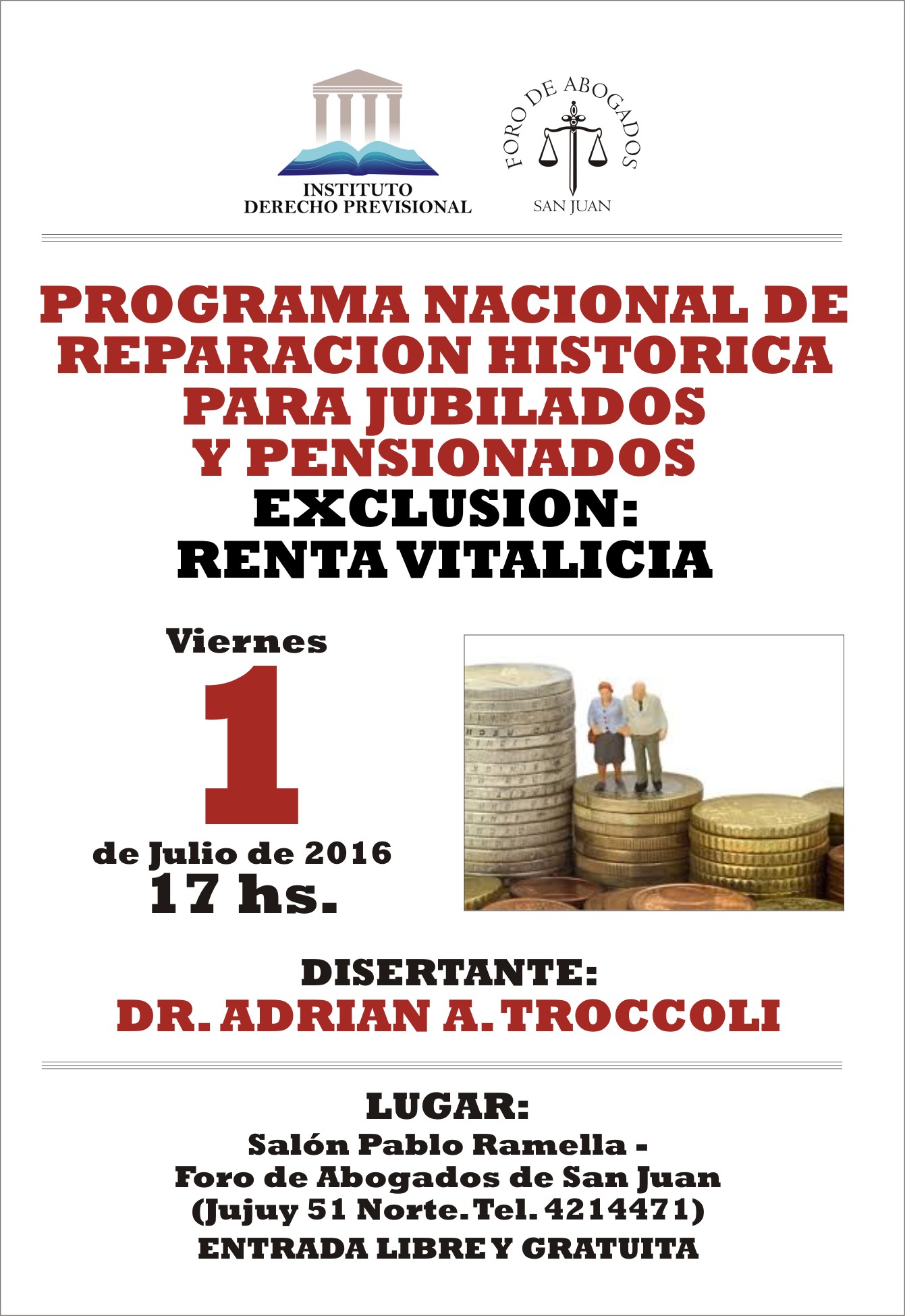 1 DE JULIO DE 2016: PROGRAMA NACIONAL DE REPARACION HISTORICA PARA JUBILADOS Y PENSIONADOS EXCLUSION: RENTA VITALICIA