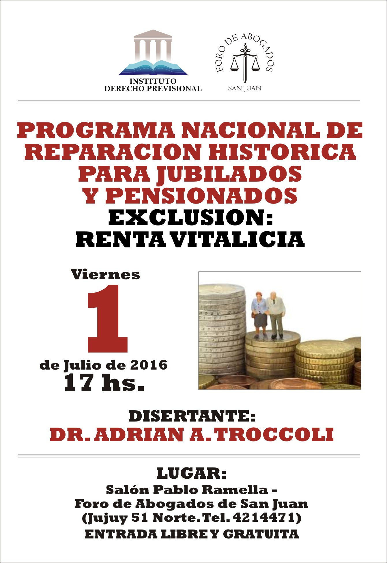 1 DE JULIO DE 2016: PROGRAMA NACIONAL DE REPARACION HISTORICA PARA JUBILADOS Y PENSIONADOS EXCLUSION: RENTA VITALICIA 28 junio, 2016 351