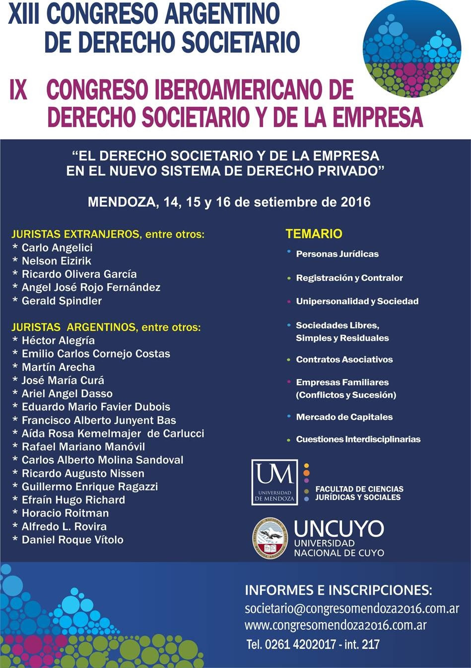 XIII – CONGRESO ARGENTINO DE DERECHO SOCIETARIO – SEPTIEMBRE 2016