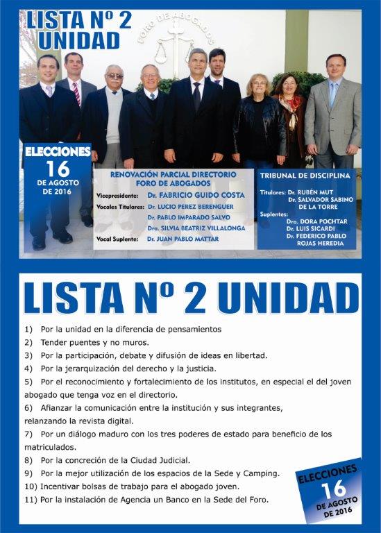 ELECCIONES AUTORIDADES (16-08-16) – LISTAS Y CANDIDATOS