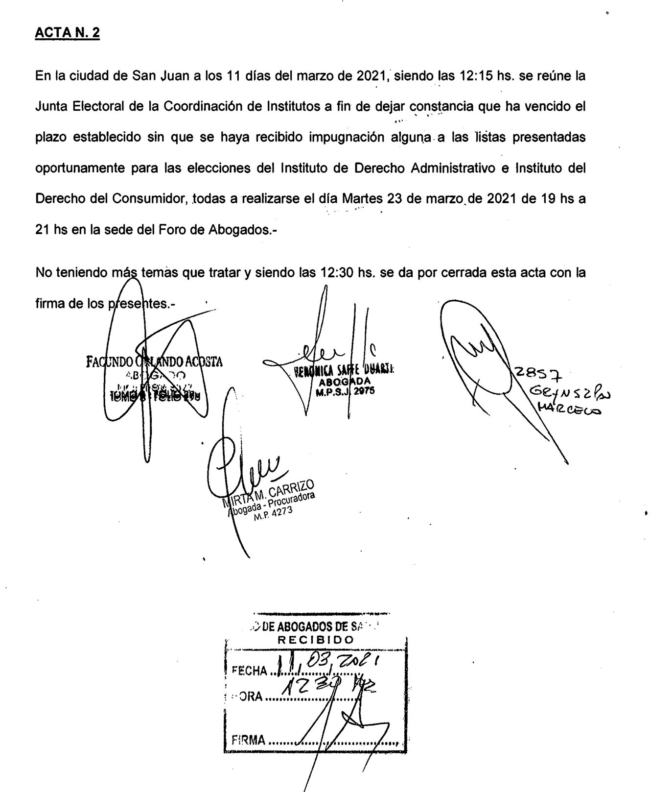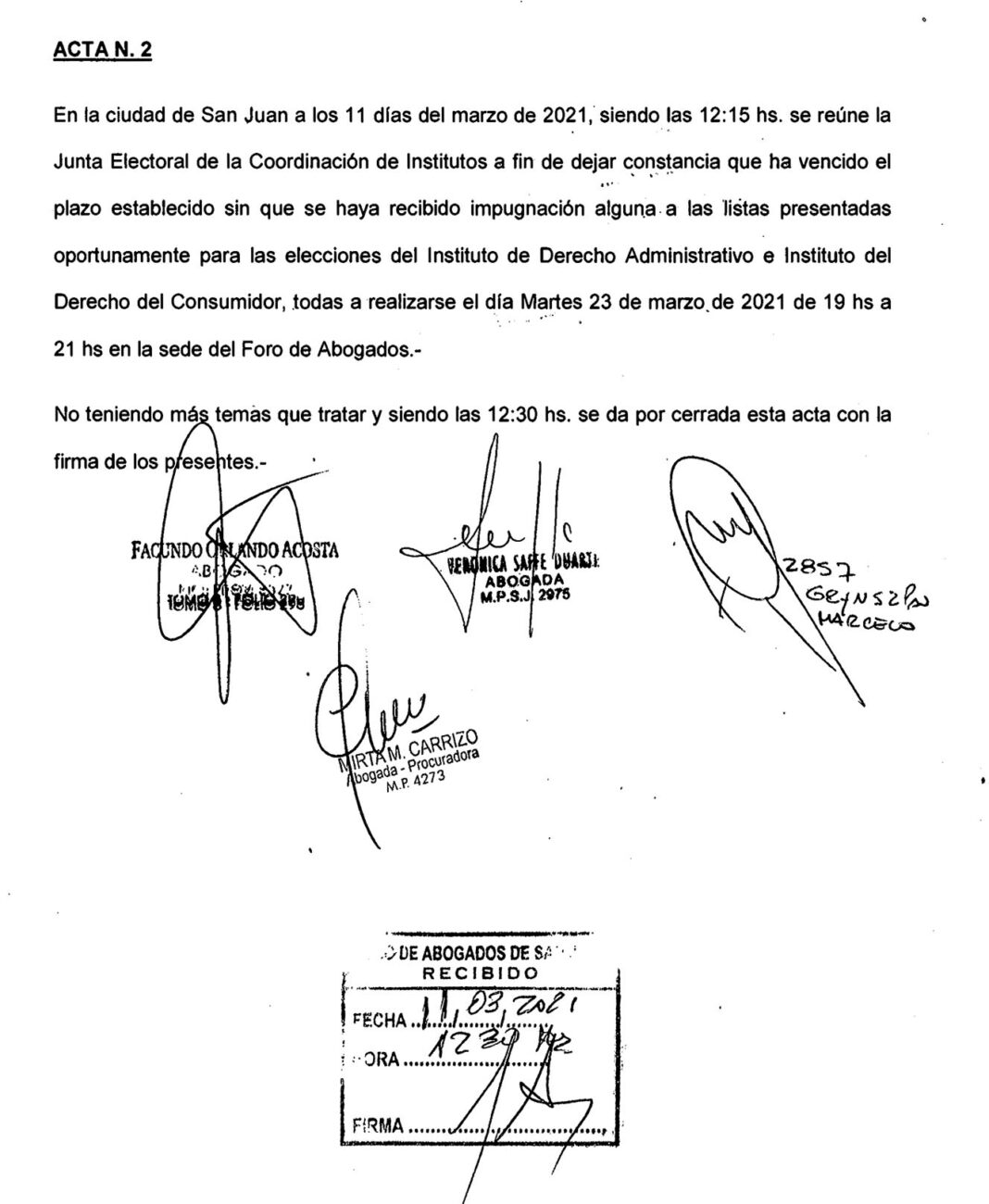 Elecciones del Instituto de Derecho Administrativo e Instituto del Derecho del Consumidor. Acta constitutiva de listas