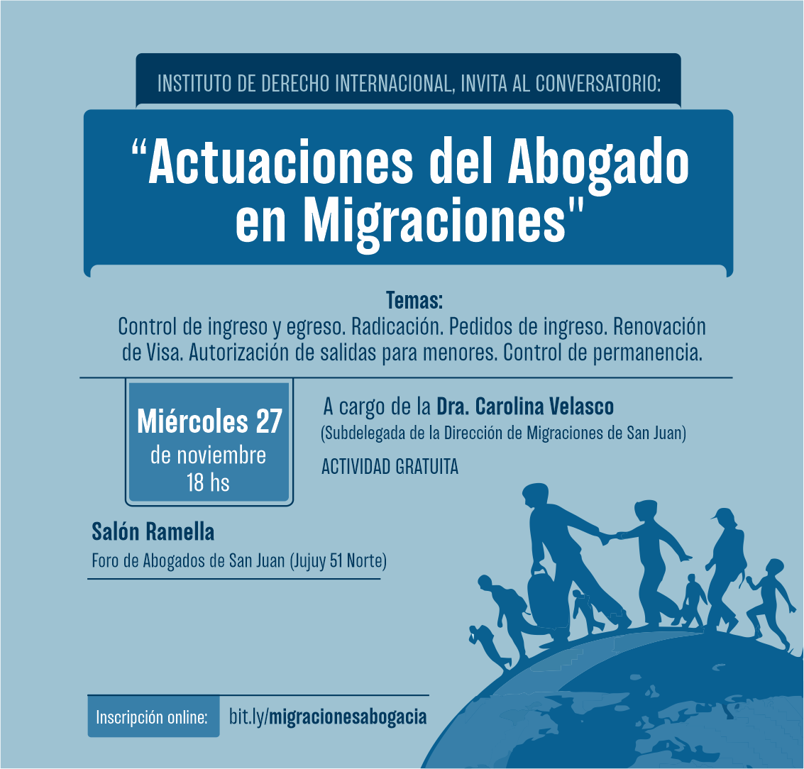 “Actuaciones del Abogado en Migraciones” 25 noviembre, 2024 95 LINK DE INSCRIPCIÓN: https://bit.ly/migracionesabogacia