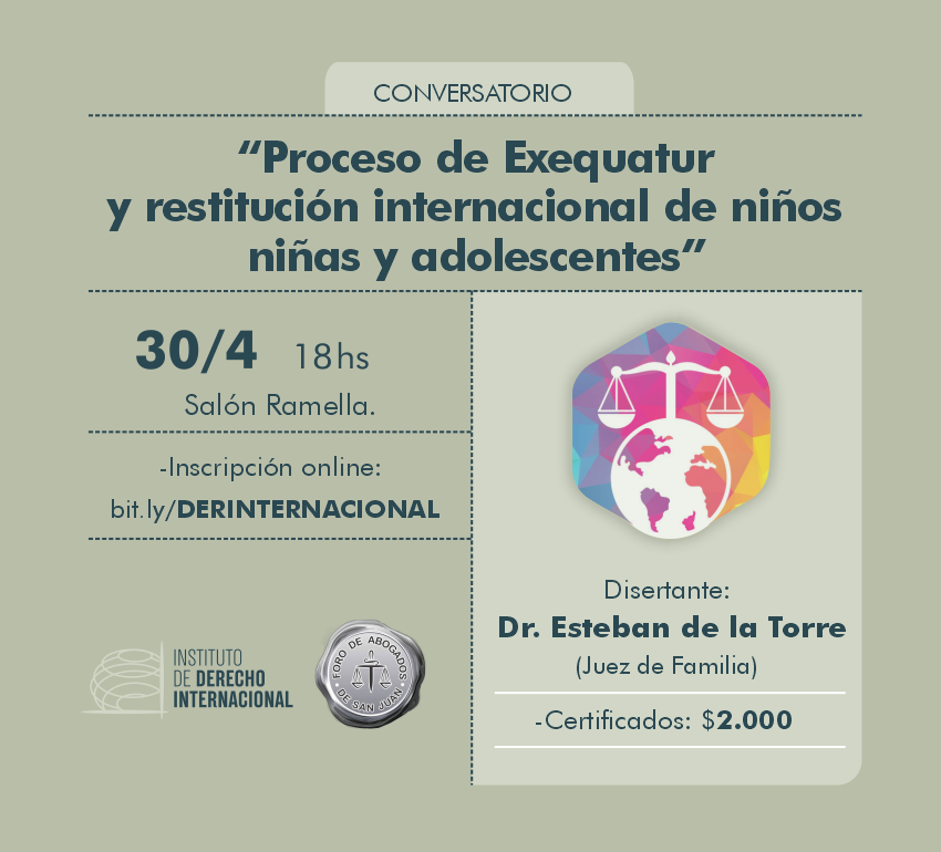 INSTITUTO DE DERECHO INTERNACIONAL, INVITA: 22 abril, 2025 61 -inscripciones: https://bit.ly/DERINTERNACIONAL