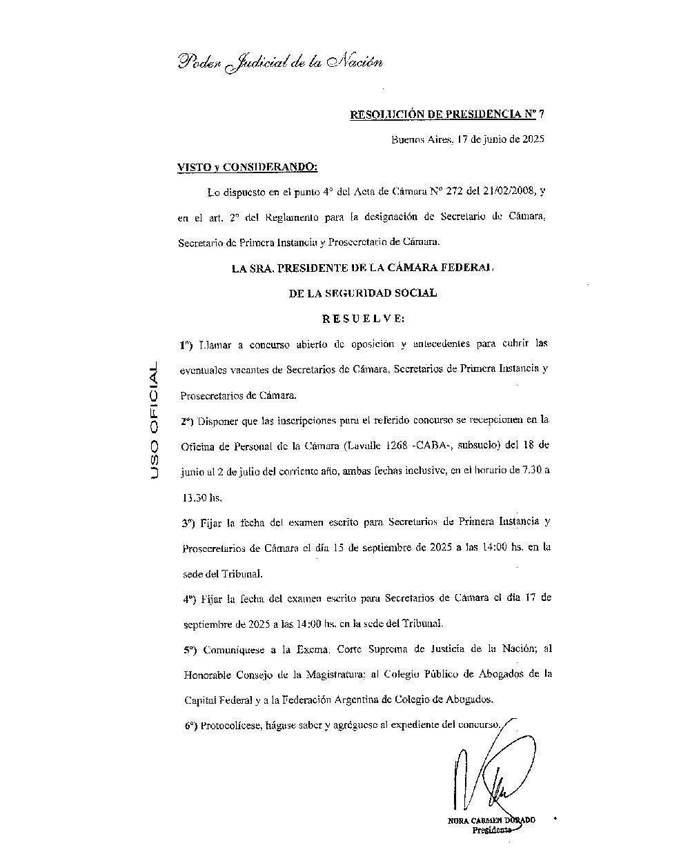 CONVOCATORIA CONCURSO DE SECRETARIOS DE CÁMARA, SEC. DE 1° INST. Y PRO. DE CÁMARA