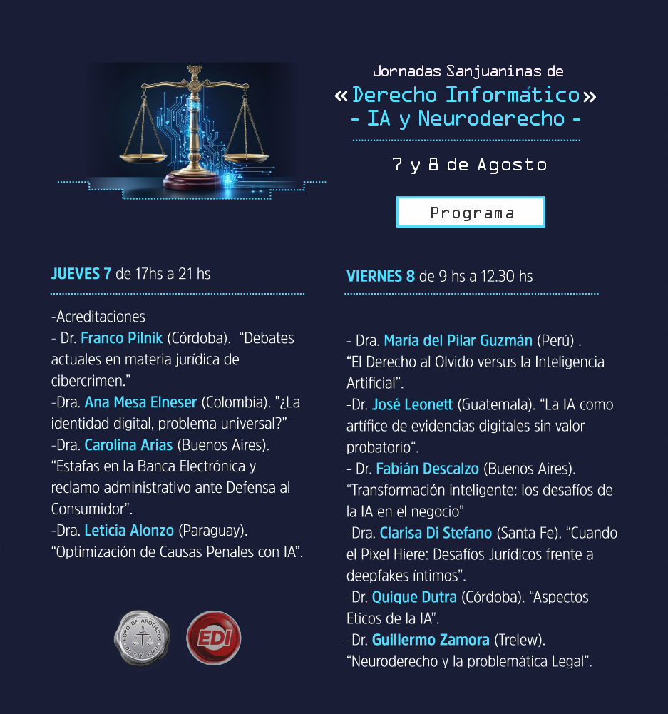 Posteriormente envíe el comprobante de pago a: msololiveros@fasj.org.ar c onsignando en el ASUNTO DEL MAIL: “IA y Neuroderecho” y añadiendo el DNI y nombre de quien efectuó el pago.