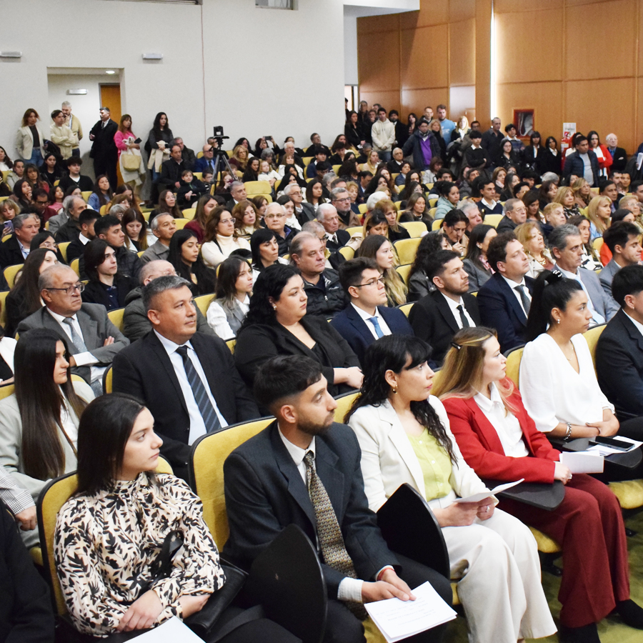 El acto fue presidido por el Presidente del Foro, Dr. Franco Montes, acompañado por la Vicepresidente, Dra. Carina García Bueno, y los miembros del Directorio: Dr. Juan Pablo Mattar, Dra. Gabriela Nollen, Dra. Valeria Pérez, Dr. Adrián Miranda, Dr. Horacio Carrizo y Dra. Cintia Frasson. En sus palabras de apertura, el Dr. Montes remarcó la trascendencia de asumir el ejercicio de la profesión con responsabilidad, ética y compromiso, pilares fundamentales que distinguen a la comunidad jurídica.