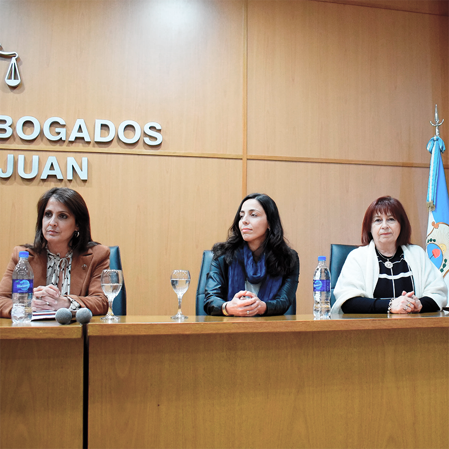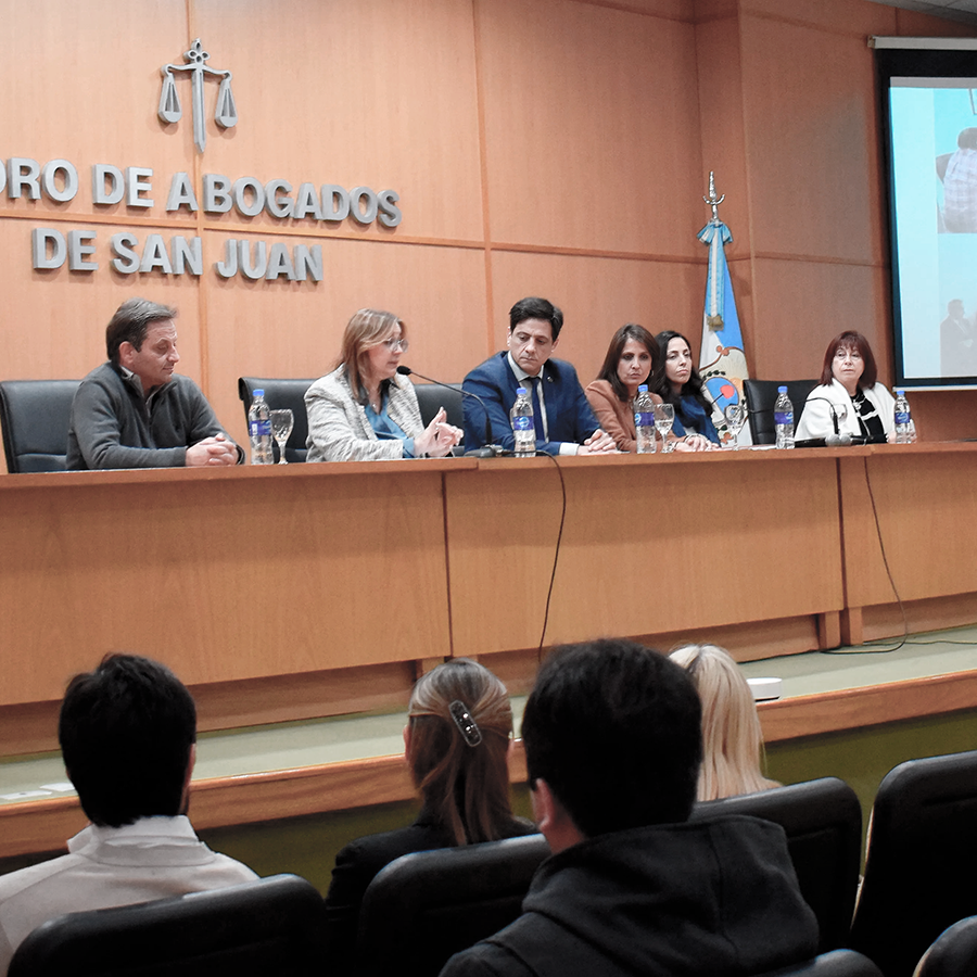 La mesa de autoridades que dio apertura a la jornada estuvo encabezada por el Presidente del Foro de Abogados de San Juan, Dr. Franco Montes, y la Vicepresidenta, Dra. Carina García Bueno. También formaron parte la Presidenta de la Corte de Justicia de San Juan, Dra. Adriana García Nieto; el Subsecretario de la Corte y Supervisor de las Oficinas Judiciales No Penales, Dr. Mauricio Cerezo; y la Coordinadora General de Oficinas No Penales, Dra. Raquel Sánchez. En representación del directorio del Foro estuvo presente el Dr. Pablo Benegas y por parte del Instituto de Derecho Civil del Foro, participó la Dra. Adriana Aguirre y la Dra. María Ángeles Hernández, codirectoras del instituto.