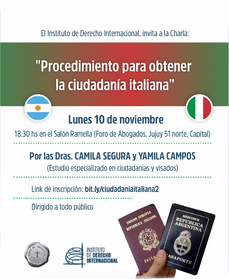 Inicio Instituto de Derecho Internacional CHARLA SOBRE “Procedimiento para obtener la ciudadanía italiana”