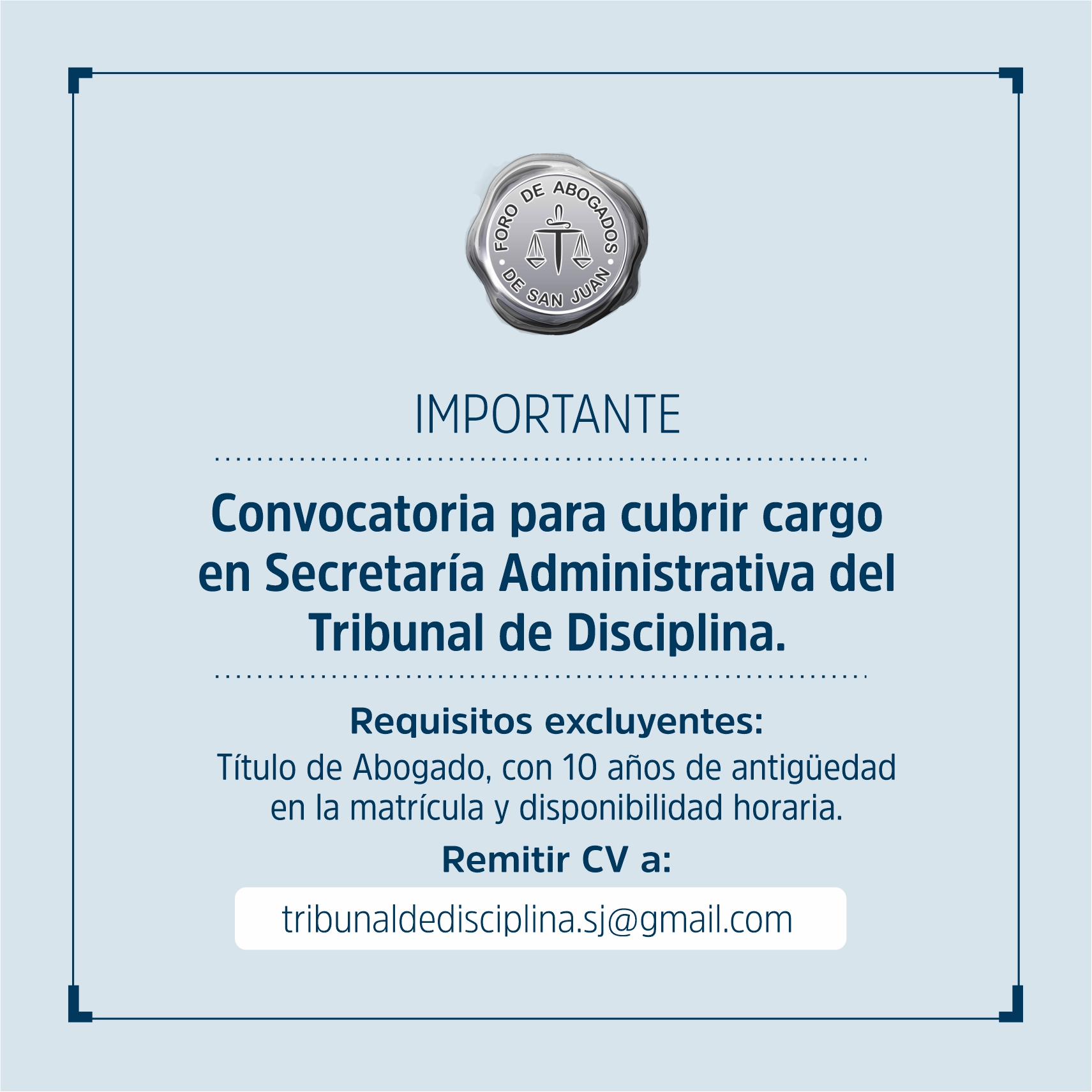 CONVOCATORIA PARA CUBRIR CARGO PARA TRIBUNAL DE DISCIPLINA